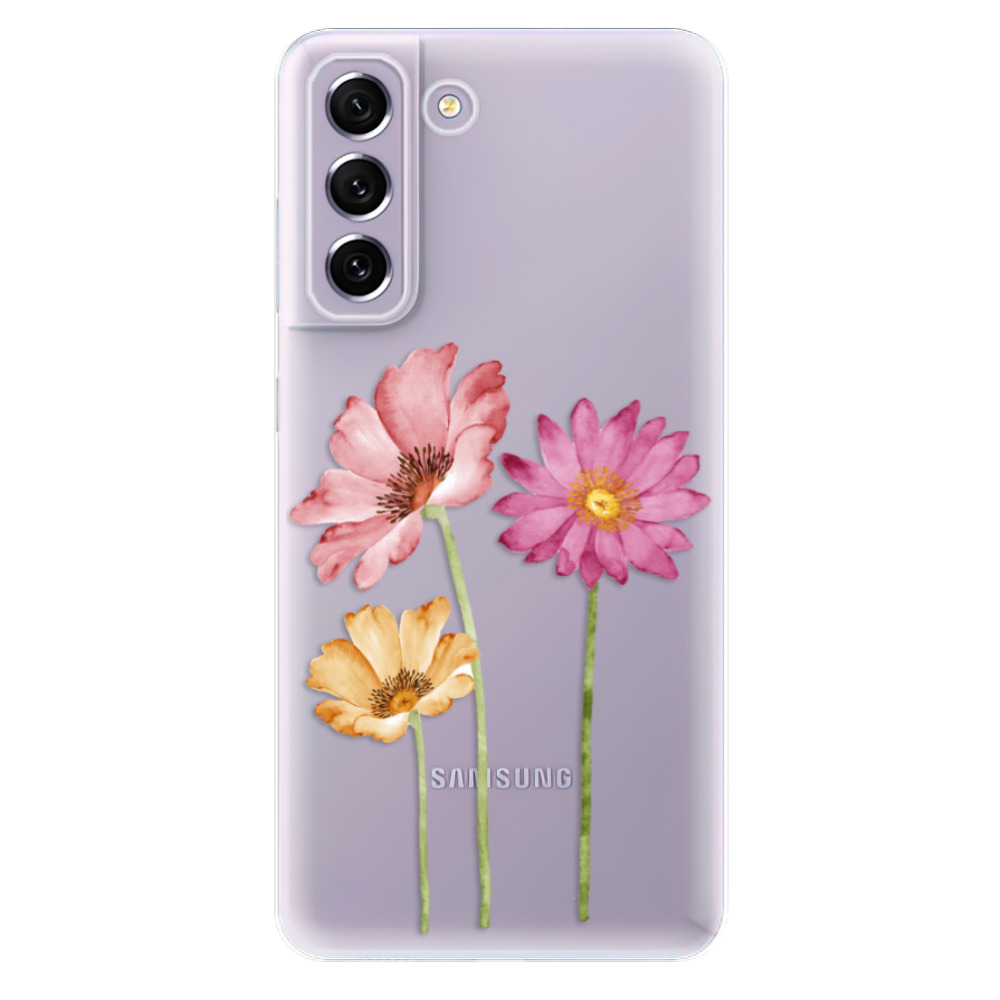 Silikonový obal, kryt, pouzdro iSaprio - Samsung Galaxy S21 FE 5G - Three Flowers - Perfektní ochrana a pružnost, stylový a odolný UV potisk, lehký a pohodlný design