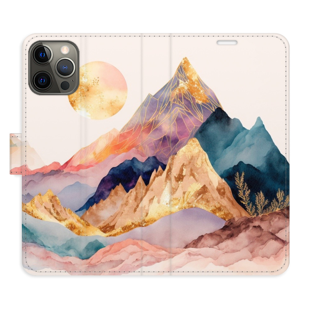 Knížkové flipové pouzdro, obal, kryt iSaprio pro mobil Apple iPhone 12 / 12 Pro - Beautiful Mountains - kapsičky na karty, ochrana celého telefonu, funkce stojánku, odolná TPU vanička, magnetické zavírání