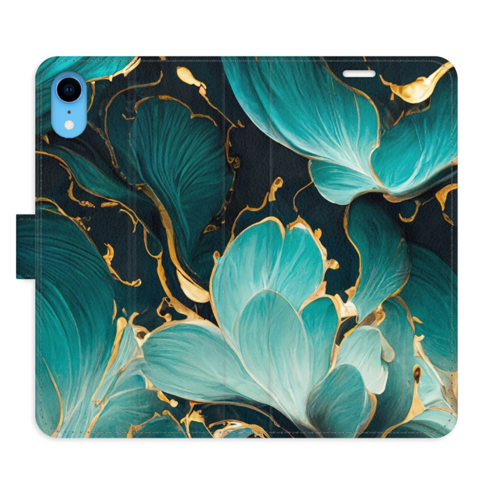 Knížkové flipové pouzdro, obal, kryt iSaprio pro mobil Apple iPhone XR - Blue Flowers 02 - kapsičky na karty, ochrana celého telefonu, funkce stojánku, odolná TPU vanička, magnetické zavírání