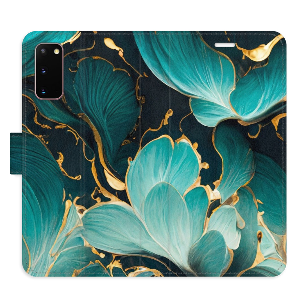 Knížkové flipové pouzdro, obal, kryt iSaprio pro mobil Samsung Galaxy S20 - Blue Flowers 02 - kapsičky na karty, ochrana celého telefonu, funkce stojánku, odolná TPU vanička, magnetické zavírání