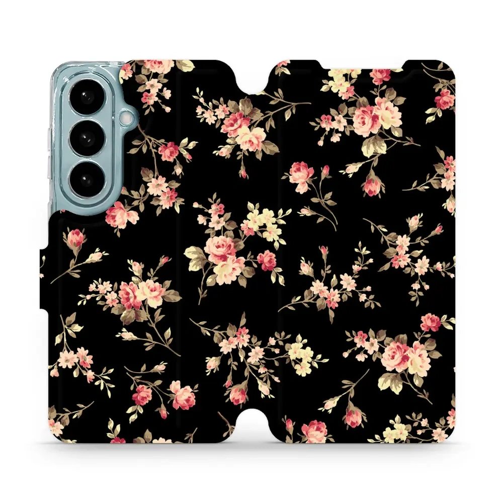 Knížkové pouzdro, flip obal, kryt Mobiwear na mobil Samsung Galaxy S26 - VD02S, květy na černé - spolehlivá ochrana, praktický stojánek a elegantní styl
