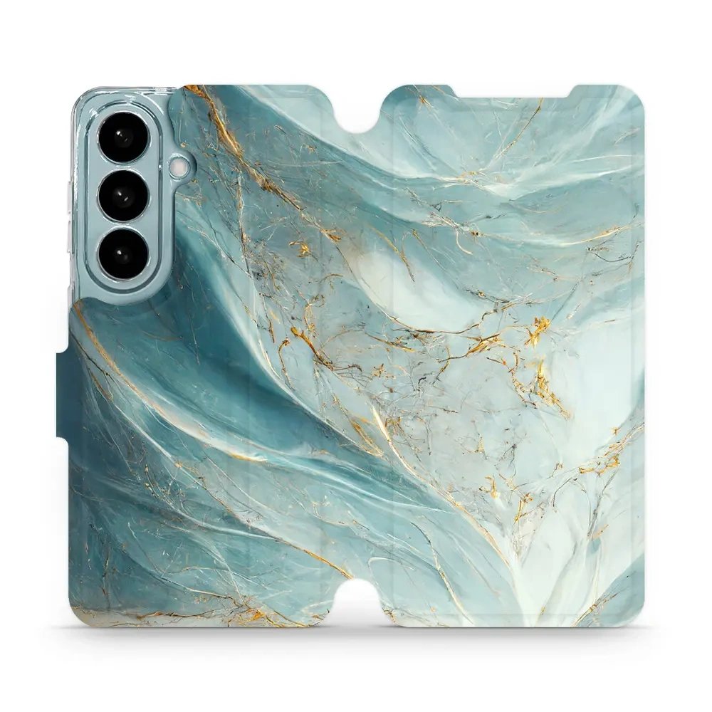 Knížkové pouzdro, flip obal, kryt Mobiwear na mobil Samsung Galaxy S26 - VP34S, zelenkavý a zlatavý mramor - spolehlivá ochrana, praktický stojánek a elegantní styl