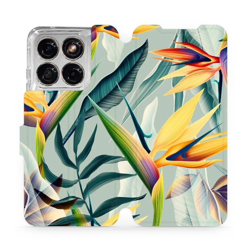 - Flip pouzdro na mobil Motorola Edge 70 Fusion - Mobiwear MC02S, žluté velké květy a zelené listy
