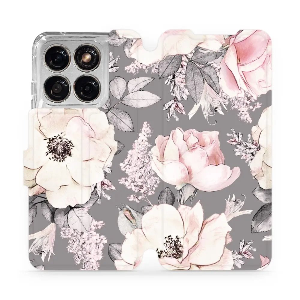 - Flip pouzdro na mobil Motorola Edge 70 Fusion - Mobiwear MX06S, květy na šedém pozadí