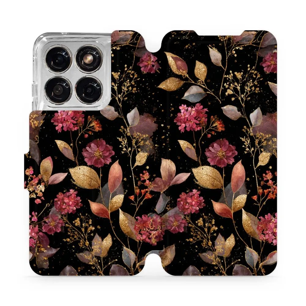 - Flip pouzdro na mobil Motorola Edge 70 Fusion - Mobiwear V171S, zlatavé lístky a květy
