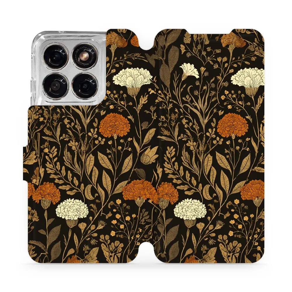 - Flip pouzdro na mobil Motorola Edge 70 Fusion - Mobiwear V174S, béžová a oranžová kvítka
