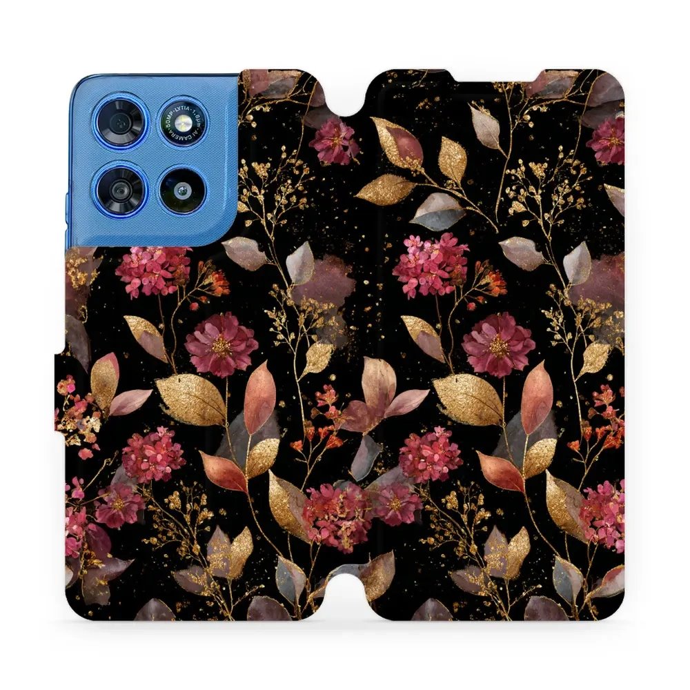 Flip pouzdro na mobil Motorola Moto G57 Power - Mobiwear V171S, zlatavé lístky a květyVyrobíme pro vás | Odesíláme do 2–3 dnů499 Kč412 Kč bez DPH