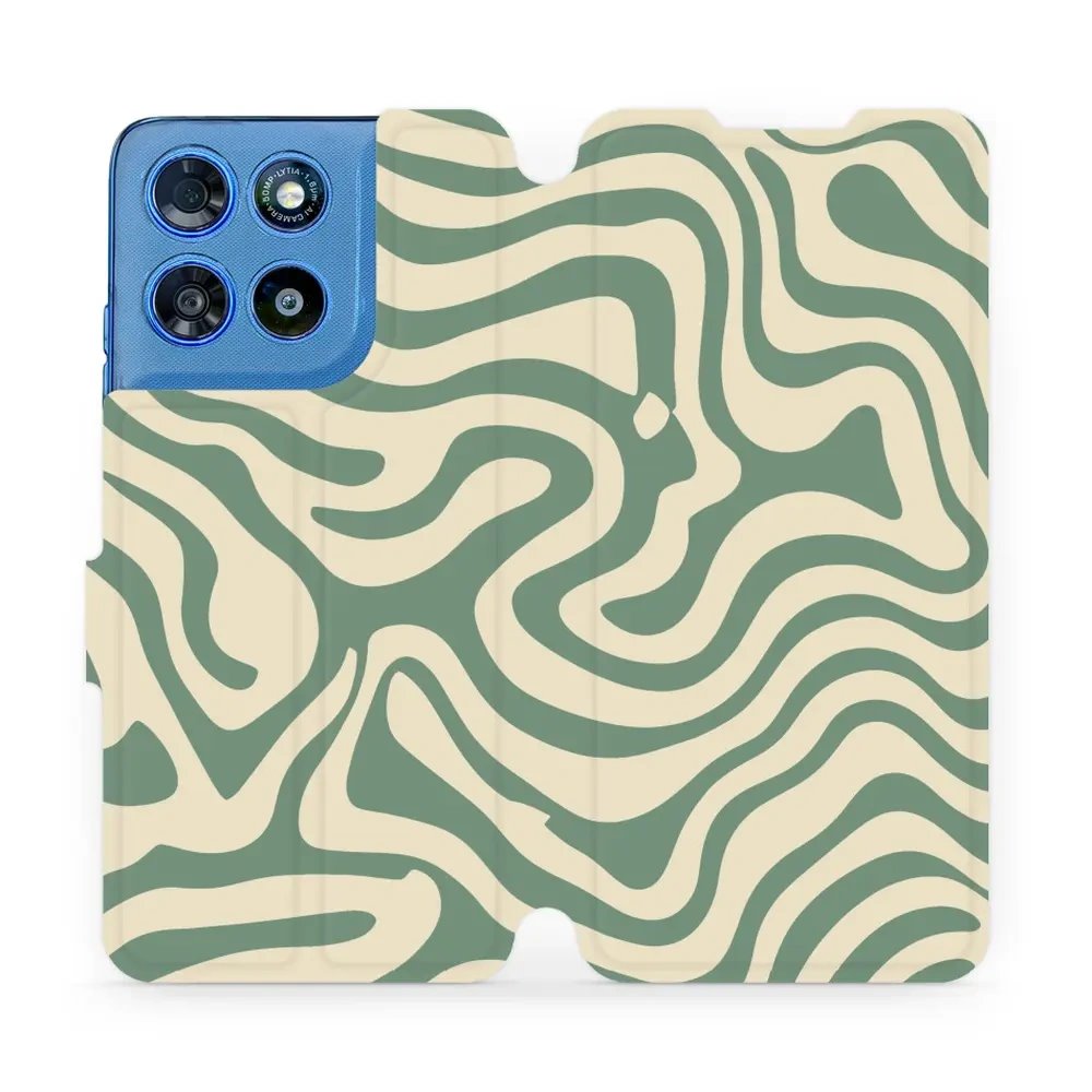 Knížkové pouzdro, flip obal, kryt Mobiwear na mobil Motorola Moto G57 Power - VA57S, zelené a béžové zkrouceniny