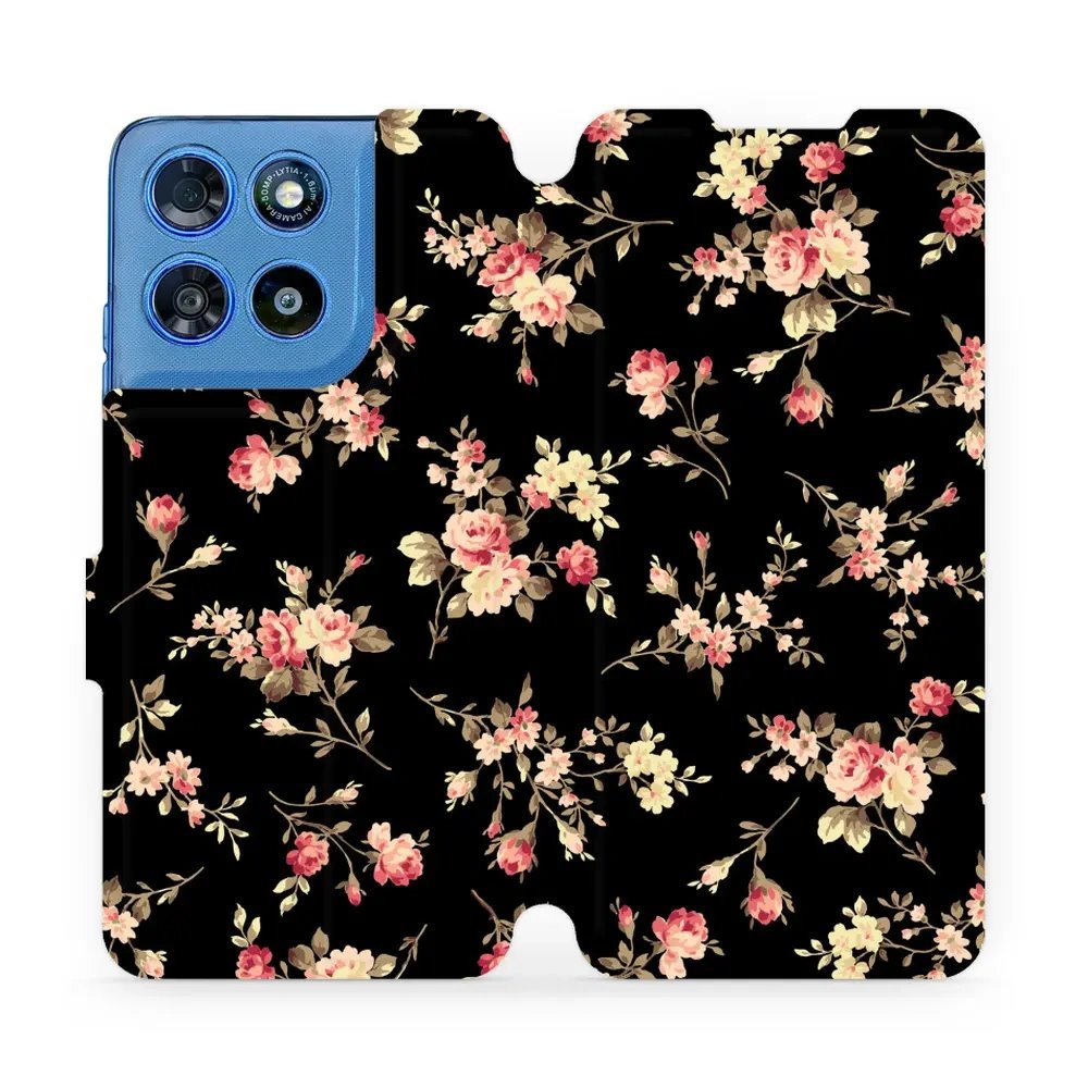 Knížkové pouzdro, flip obal, kryt Mobiwear na mobil Motorola Moto G57 Power - VD02S, květy na černé