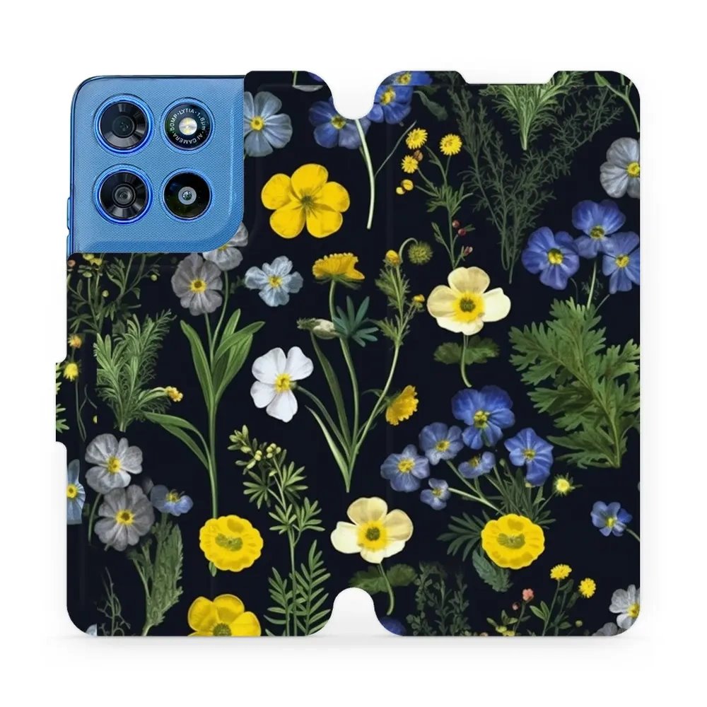 - Flip pouzdro na mobil Motorola Moto G57 Power - Mobiwear VP47S, kvítky v černé