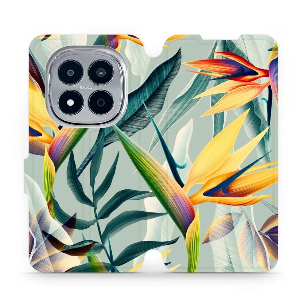 - Flip pouzdro na mobil Xiaomi Redmi Note 15 Pro 4G - Mobiwear MC02S, žluté velké květy a zelené listy
