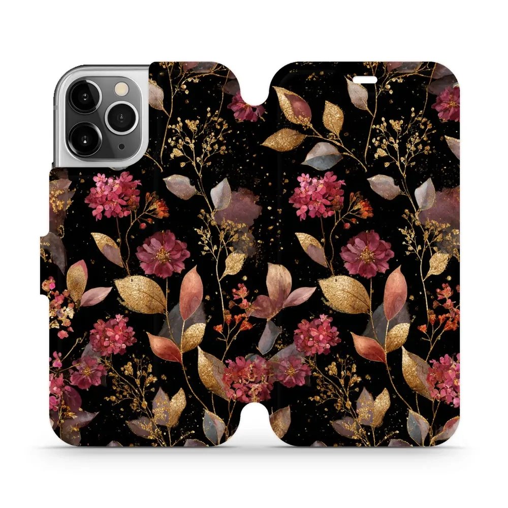 - Flipové pouzdro Mobiwear - Apple iPhone 12 Pro - V171S Zlatavé lístky a květy