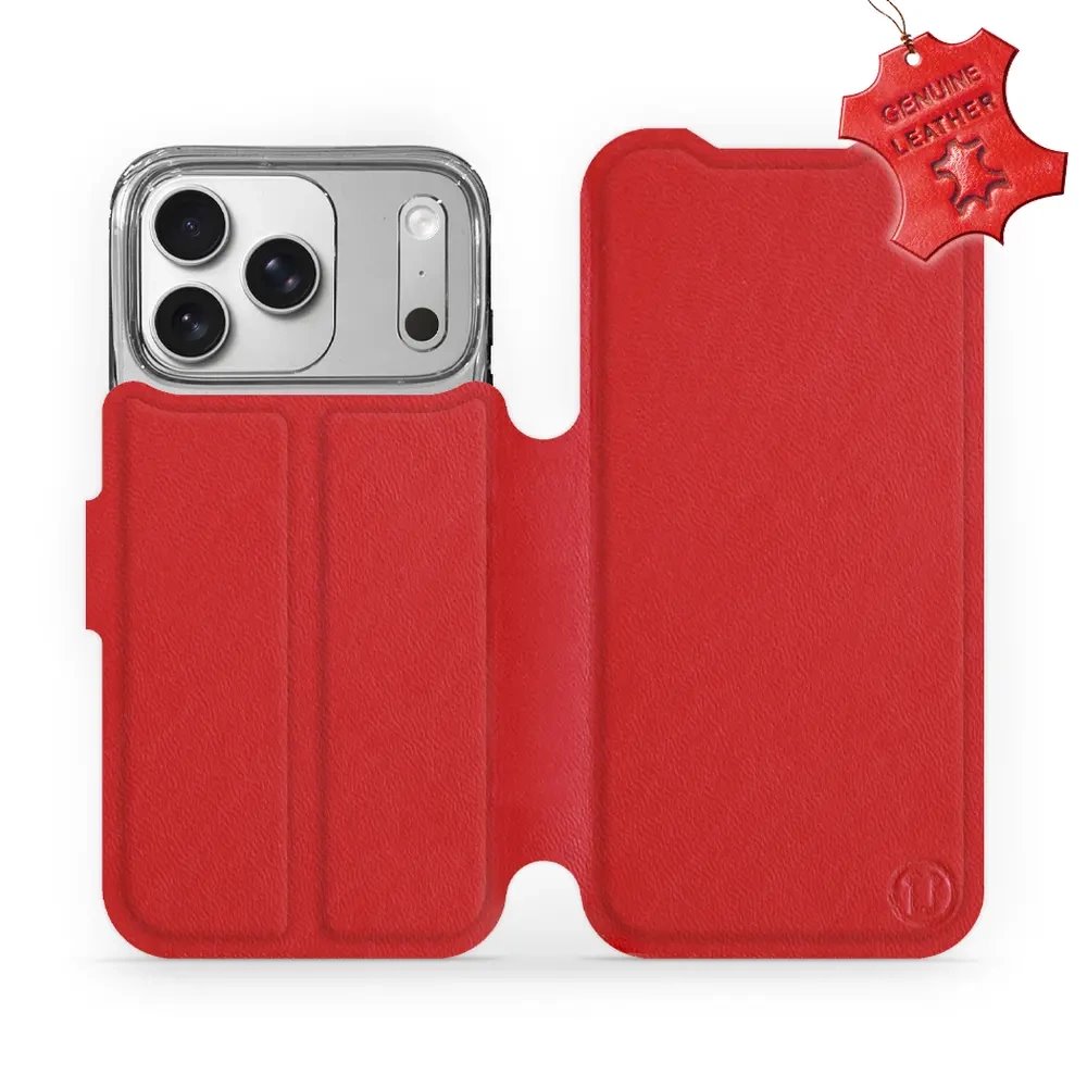 - Kožené flip pouzdro Mobiwear - Apple iPhone 17 Pro - Červené