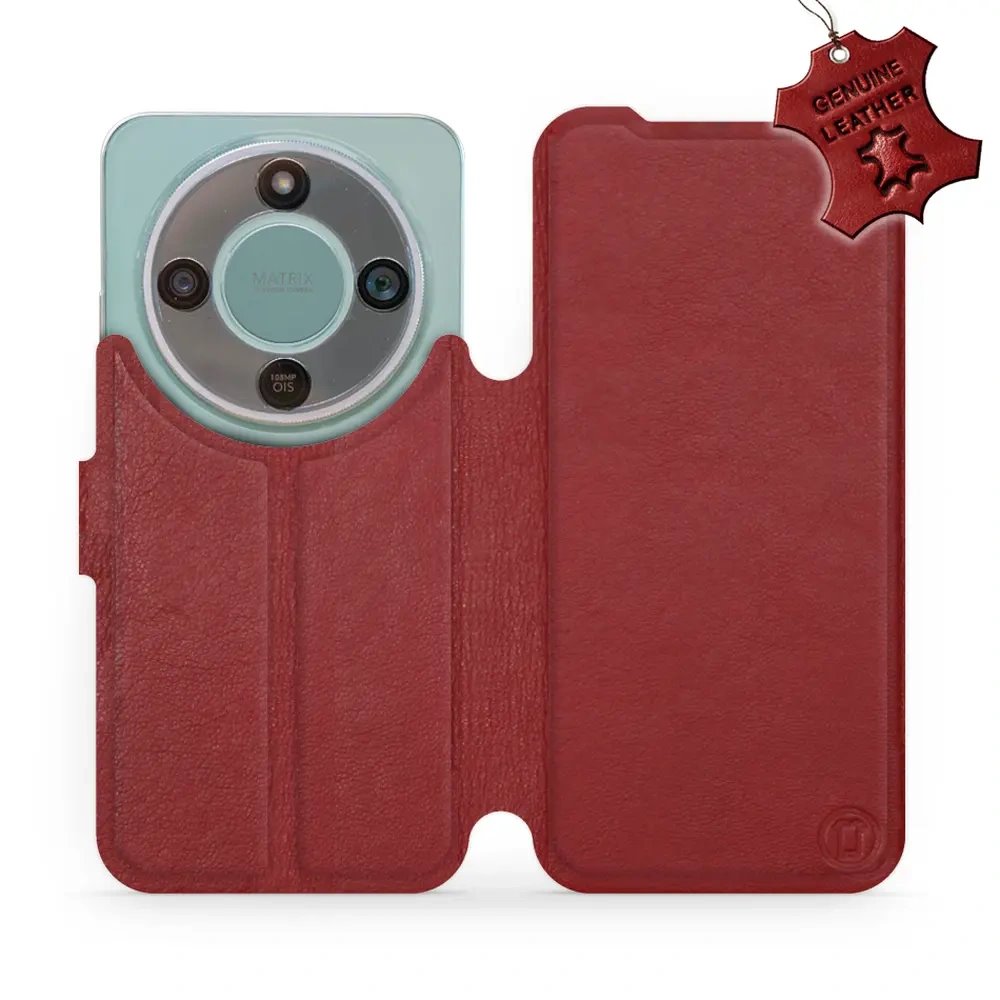 Kožené flipové pouzdro, obal a kryt Mobiwear na mobil Honor Magic8 Lite - tmavě červené, elegantní ochrana, stojánek a magnetické zavírání
