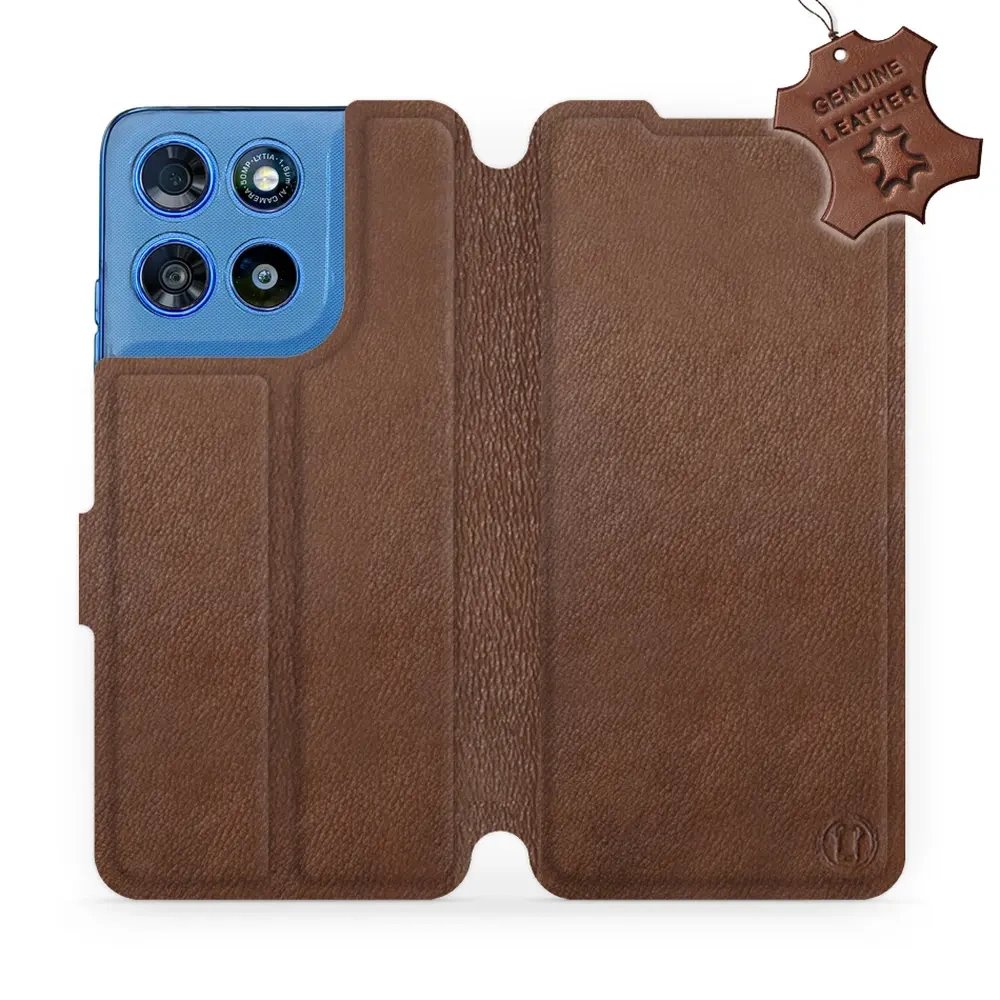 Kožené flipové pouzdro, obal a kryt Mobiwear na mobil Motorola Moto G57 Power - hnědé