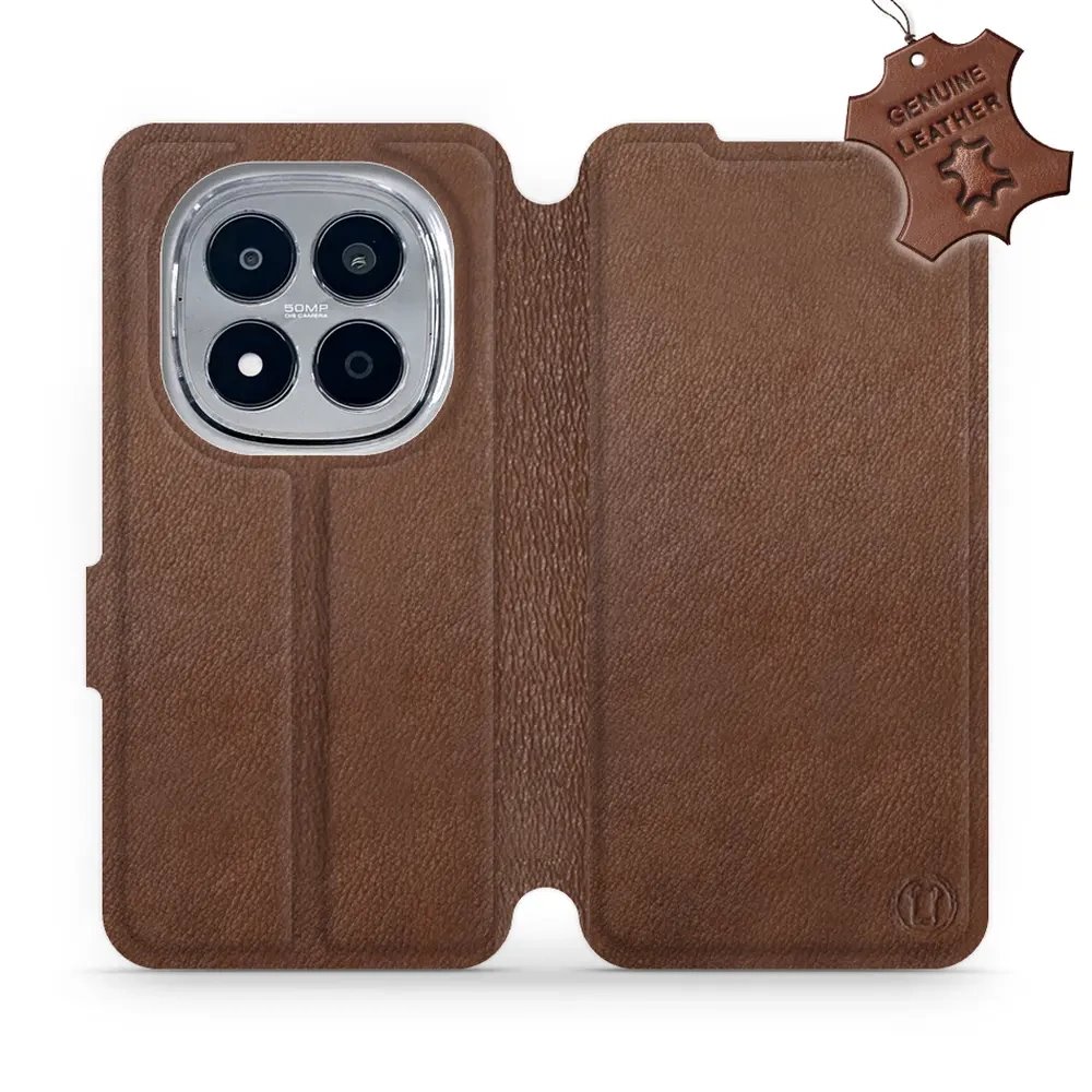 - Kožené flip pouzdro na mobil Xiaomi Redmi Note 15 Pro 4G - Mobiwear - hnědé