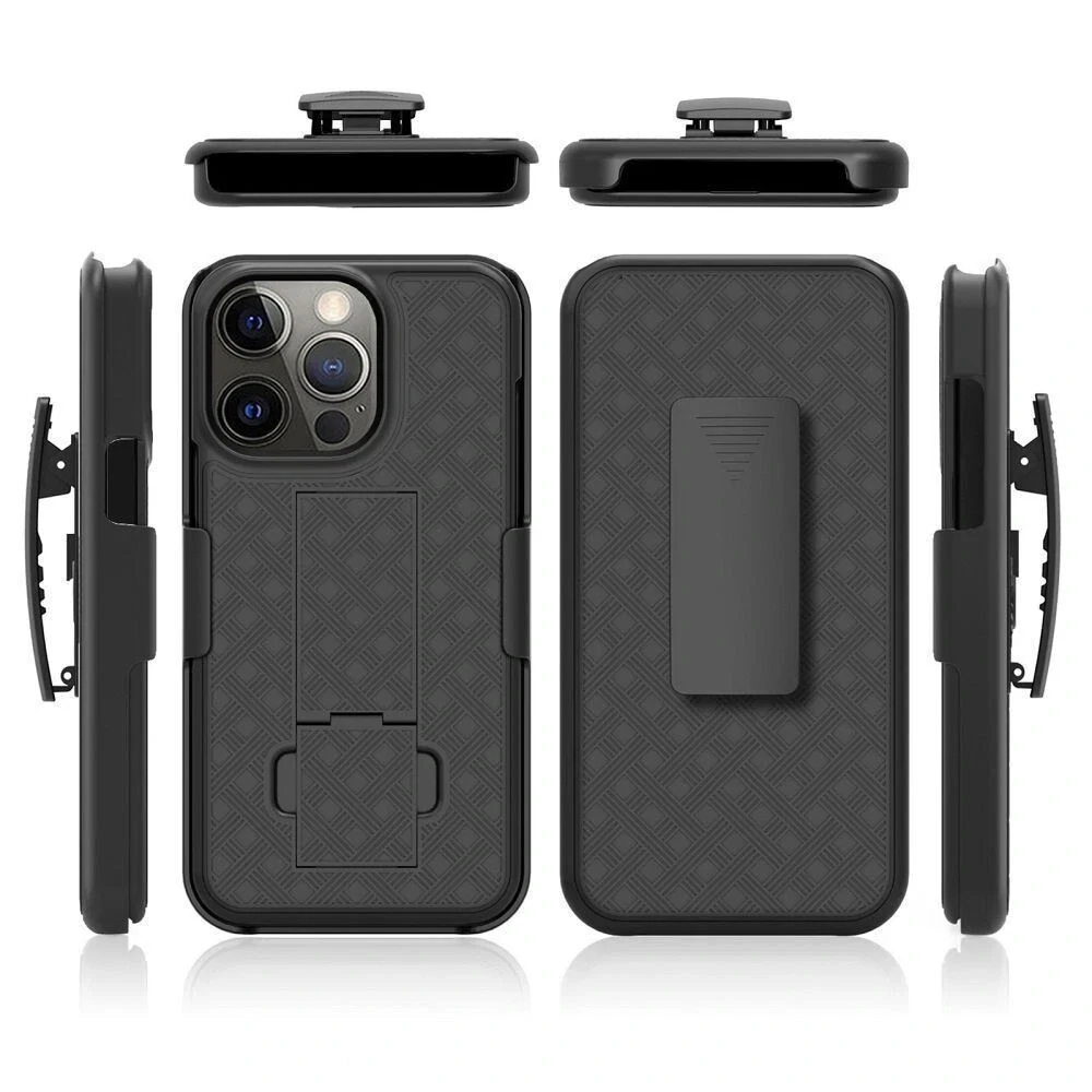 Kryt HOLSTER s klipem a stojánkem pro Apple iPhone 12 / 12 Pro - černý