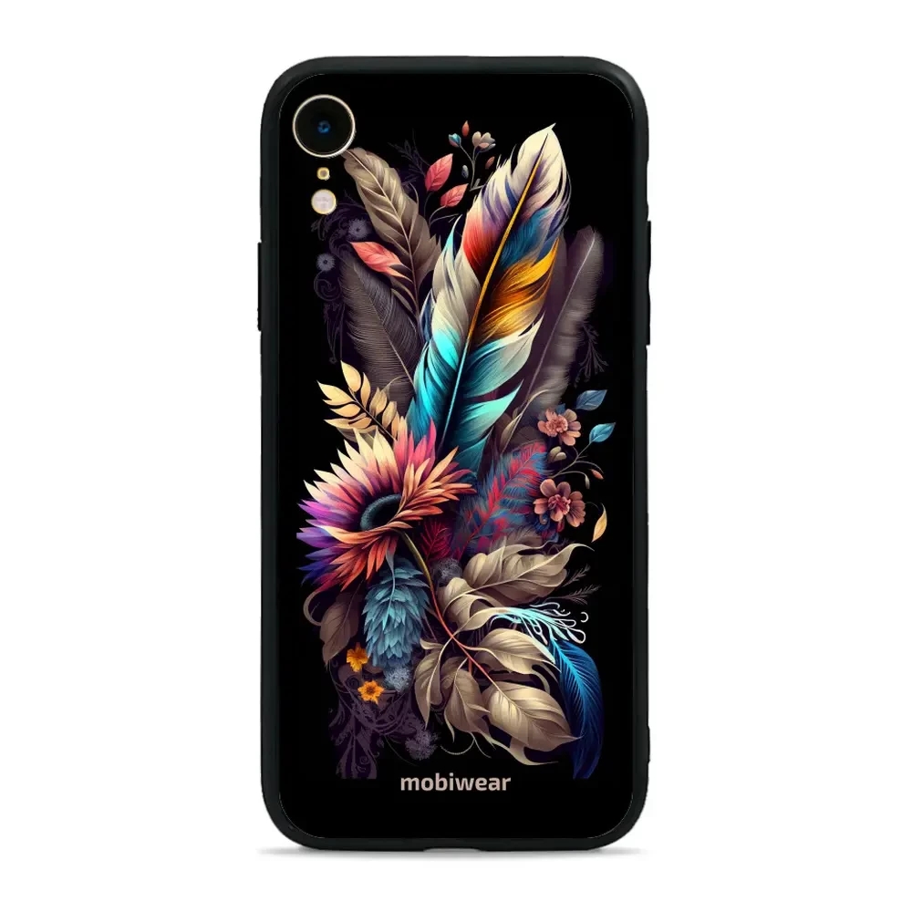Lesklý obal, kryt, pouzdro Mobiwear Glossy na mobil Apple iPhone XR - G011G Kytice s pírkem - ochrana zad i boků telefonu, potisk co se neošoupe, tenký design, parádní motiv