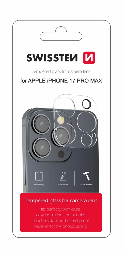 - 1× Swissten ochranné sklo na čočky fotoaparátu pro iPhone 17 Pro Max