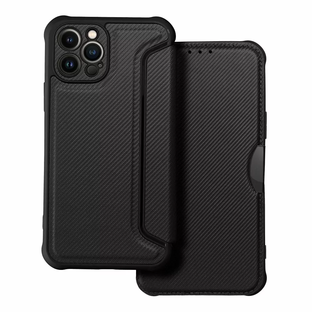 - Ultimátní flip pouzdro RAZOR Coolcase Carbon na mobil Apple iPhone 12 Pro černé